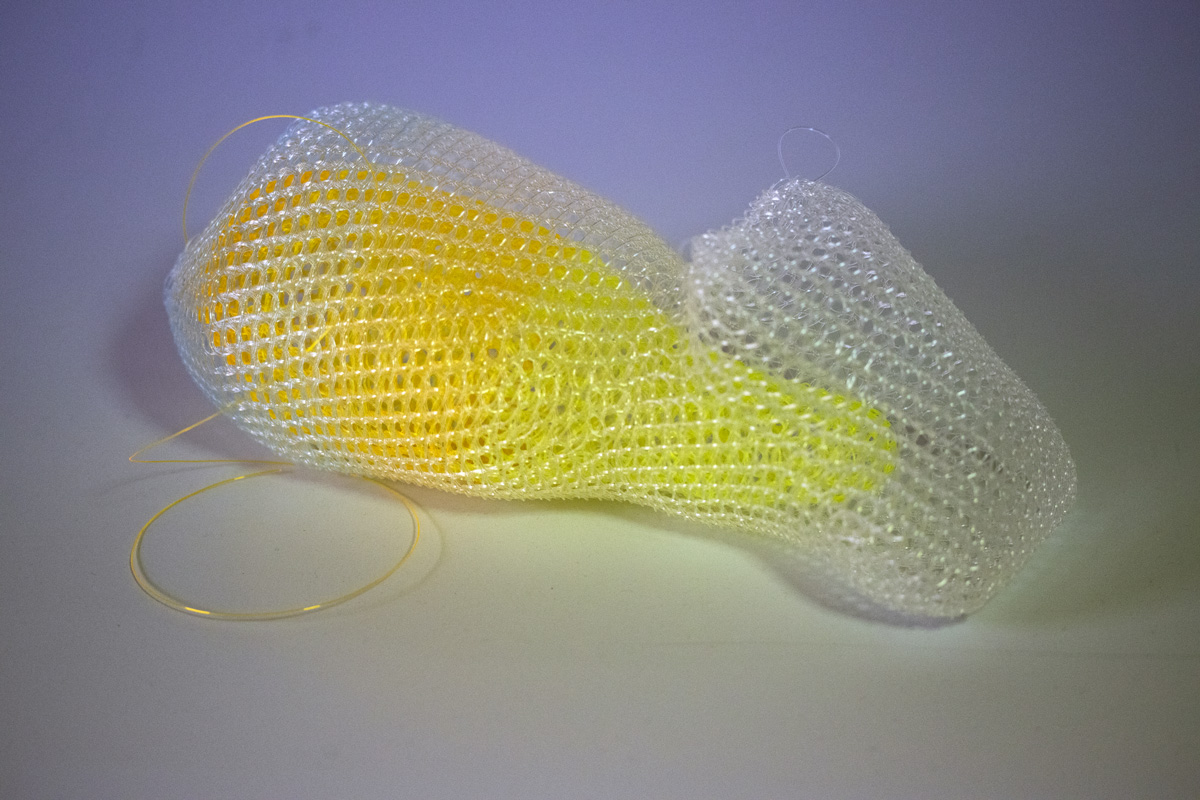作品 ヨコになったクリアなカバ。 作品名:ヨコになったクリアなカバ。 サイズ:W≒100mm D≒250mm H≒100mm 素材:ナイロンテグス、LED 2021年4月 HIPPOの仲間たち展 -14周年記念展示- 作品