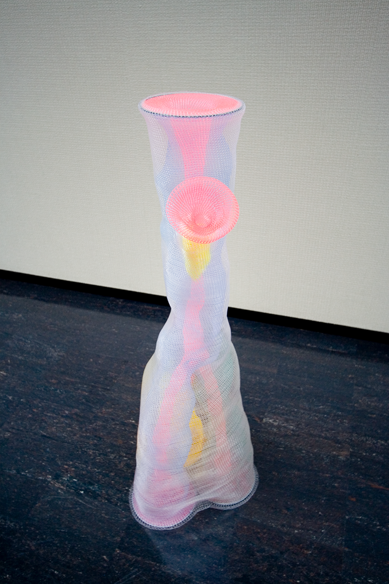 作品名:chu サイズ:W=500mm D=500mm H=1,200mm 素材:ナイロンテグス 2005年9月 第44回北陸中日美術展 出展